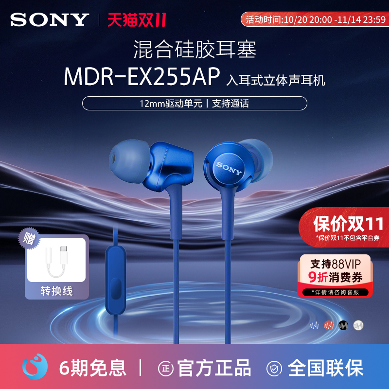 199Sony/索尼 MDR-EX255AP 入耳式立体声通话多色耳机