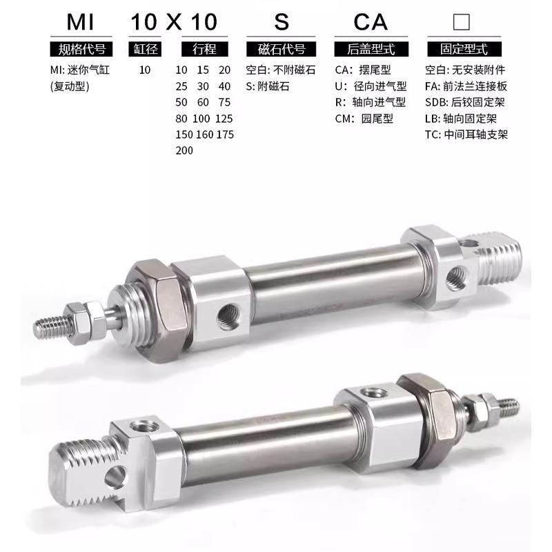 AirTAC亚德客气缸 MI16*5/10/15/20/25/30/35/40-S-CA/U/R/CM-TC