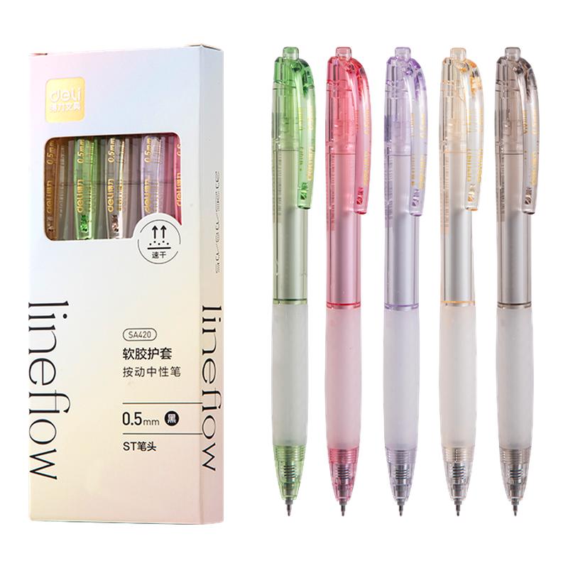 2.5deli得力S08臻顺滑中性笔按动学生用0.5mm圆珠笔考试办公教师专用