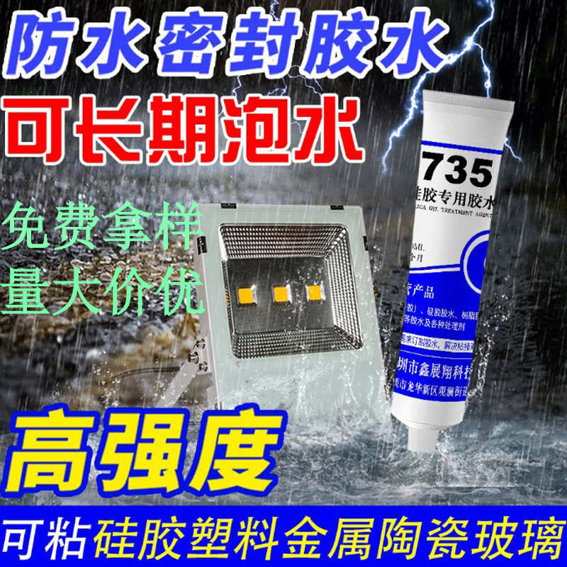 鑫展防水胶735胶水粘abs硅胶pc不锈钢pp亚克力ps玻璃不发白密封翔