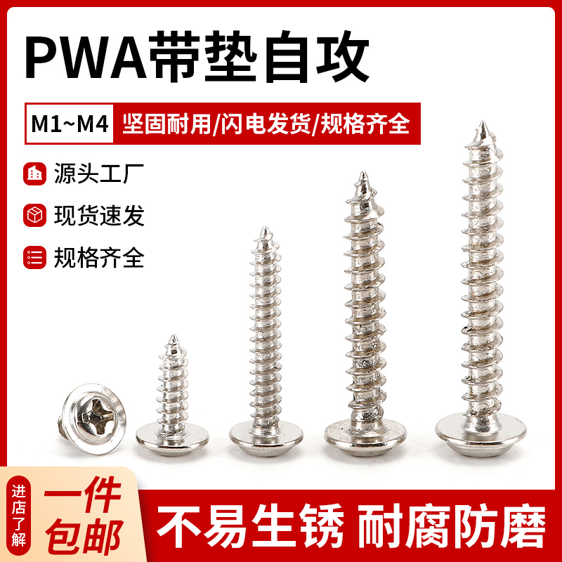 3.5304不锈钢十字圆头带垫自攻螺丝钉PWA带介木螺钉M2M2.3M2.6M3-M5