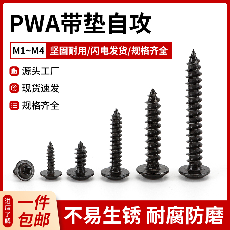 1.42M1.2M1.4M1.7M2M2.3M2.6M3黑色PWA十字圆头自带垫介子自攻螺丝钉