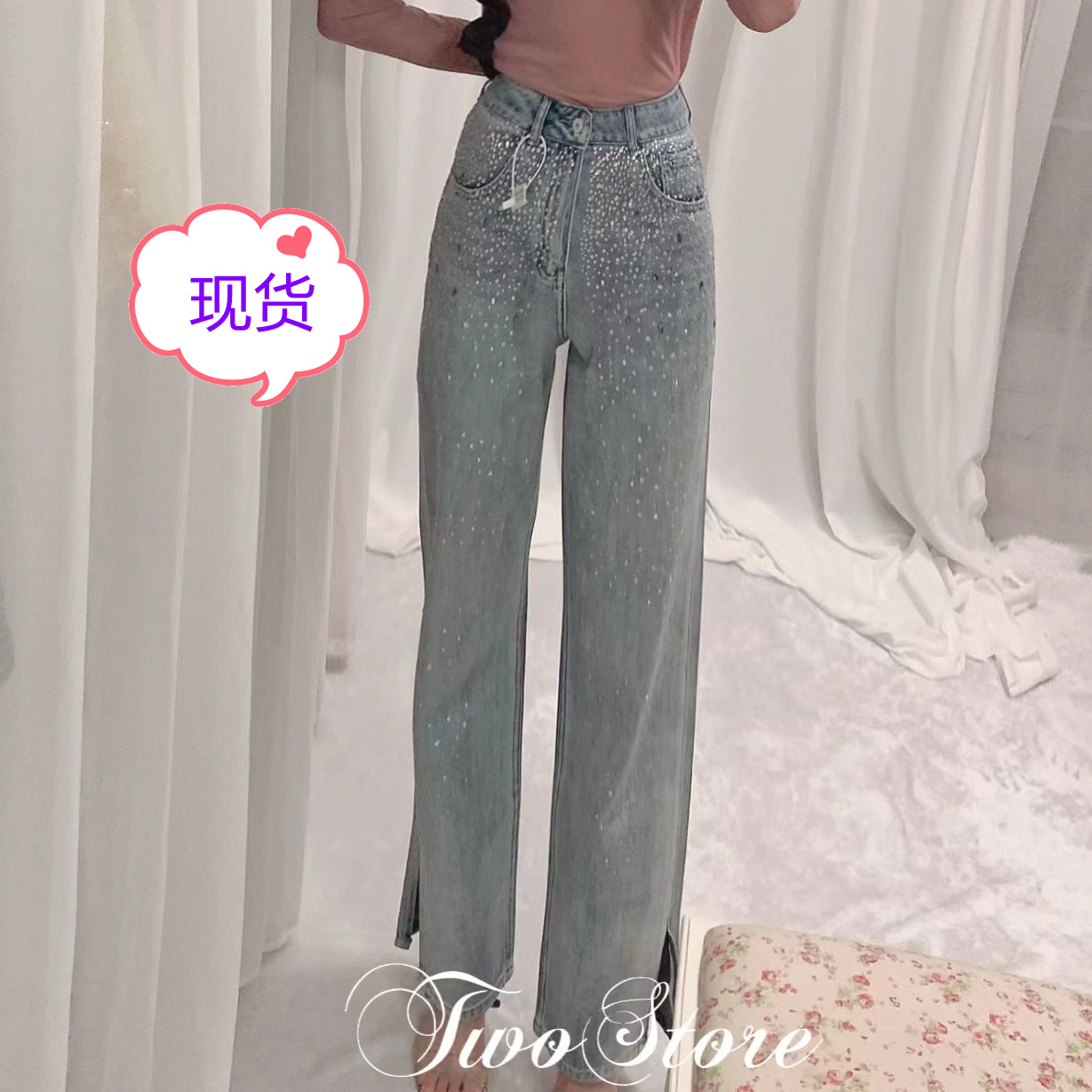 235TWO2022春季新款手工烫钻直筒牛仔长裤女显高显腿长裤子