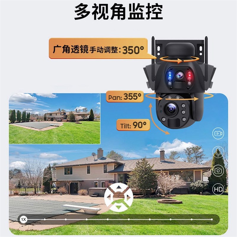 ubox跨境太阳能4G摄像头监控双画面360可600万高清全彩摄像头