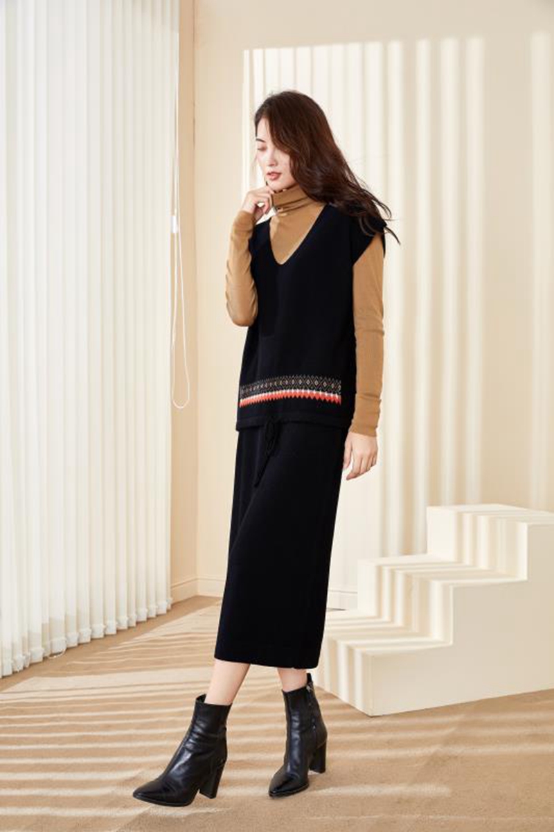 220开顺羊毛衫K20WF949女2024秋冬新款外套马甲V领针织毛衣背心