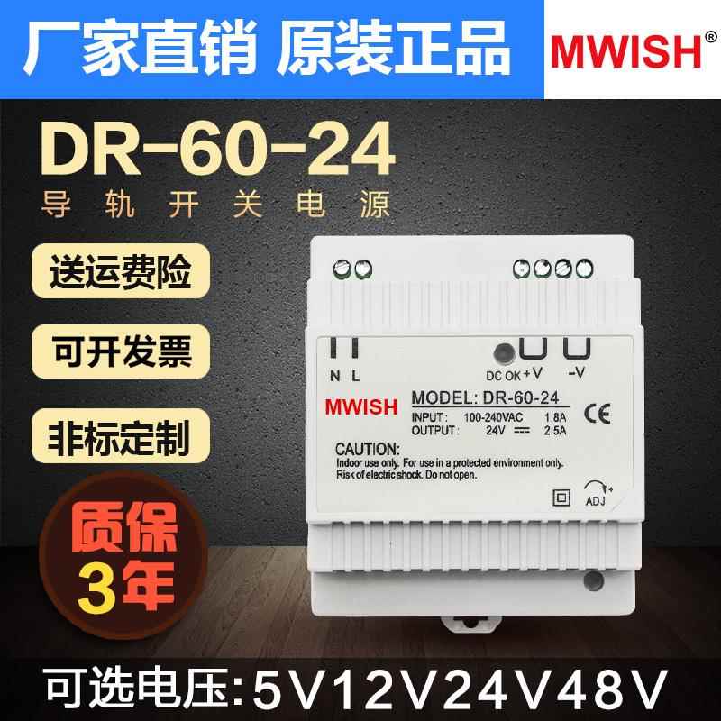 mwel DR-60W-24V2s.5A 12V5A导轨式安装开关电源220转DC直流变压