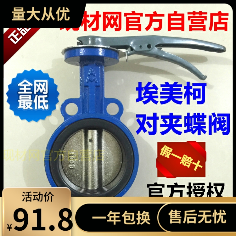 92.3埃美柯正品手动蝶阀D71X-16铸铁对夹式消防管道手动开关阀门802A