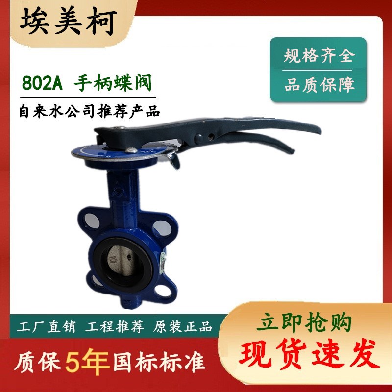 105.8正品埃美柯802A铸铁手柄对夹式蝶阀D71X-16 消防管道手动开关阀门