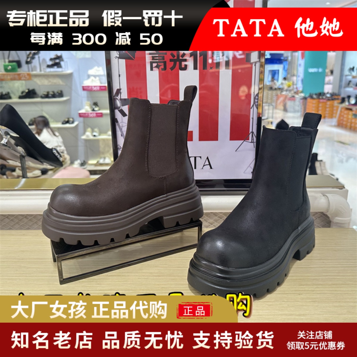 289专柜正品TATA他她2024秋冬厚底加绒切尔西靴女弹力瘦瘦靴CYS01DD4