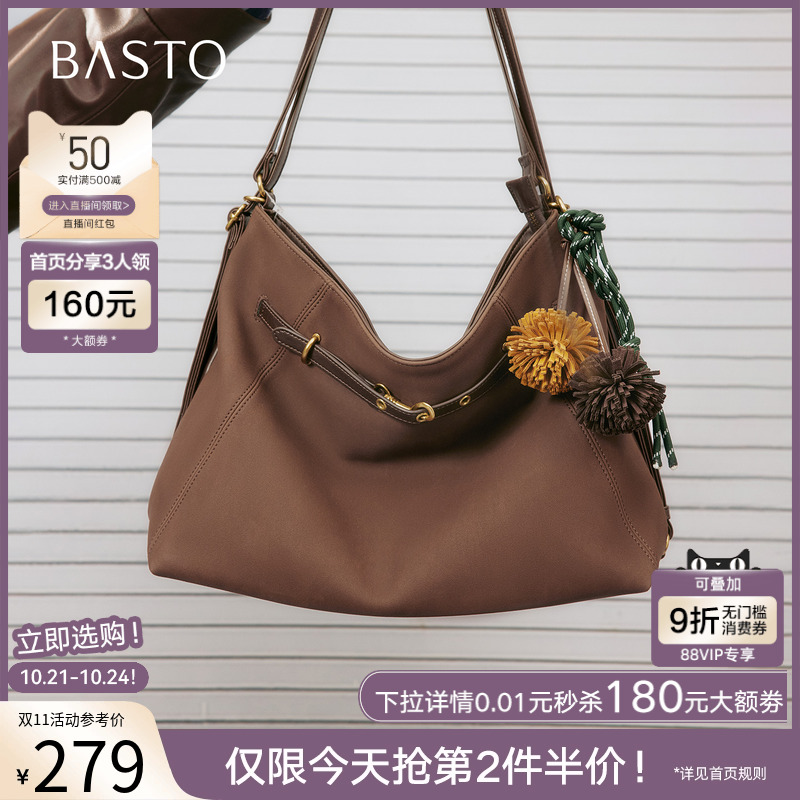 658百丽包包女2025新款休闲小香风单肩斜挎腋下包绒面托特包X7210DX5