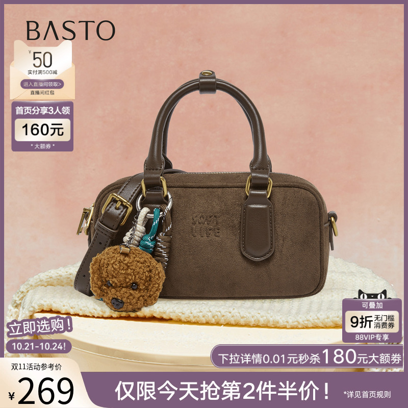 905百丽女包2025新款手提保龄球包斜挎真皮反绒麂皮波士顿包BL861DX5