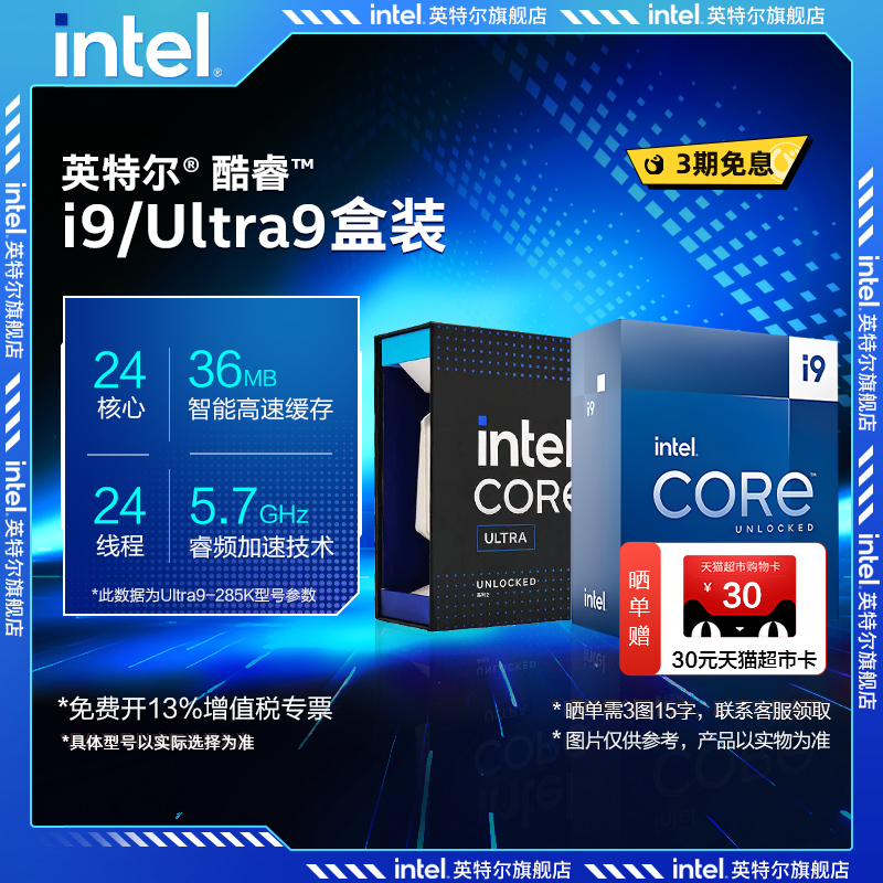 4099【自营】Intel/英特尔 酷睿Ultra 9 U9 285K 盒装CPU台式机处理器