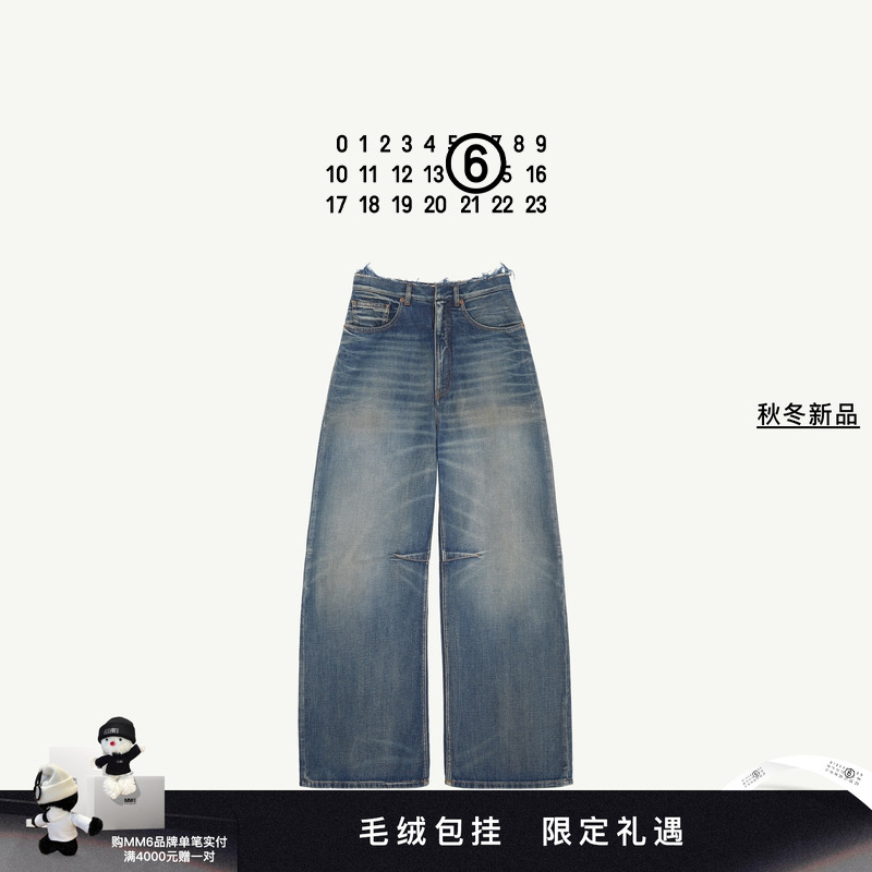 3680[尊享特惠]MM6褶皱效果复古简约通勤牛仔裤直筒长裤