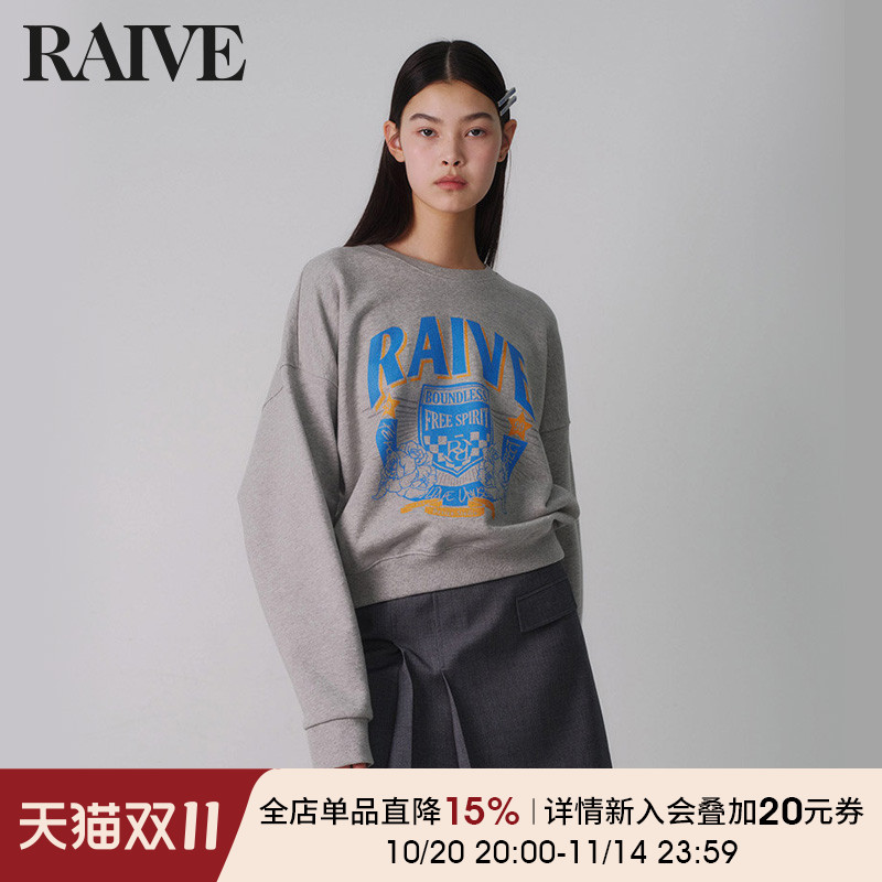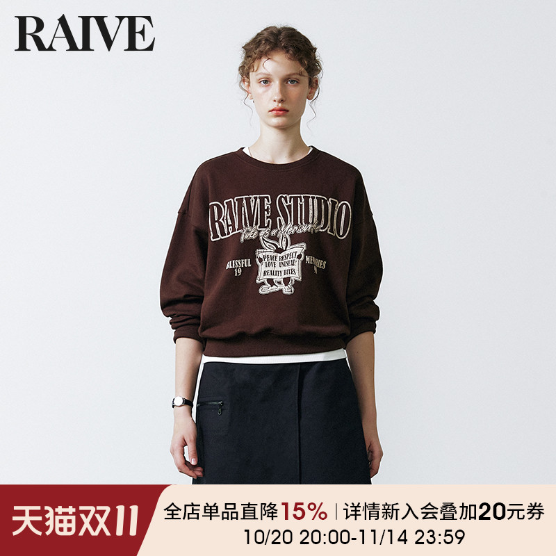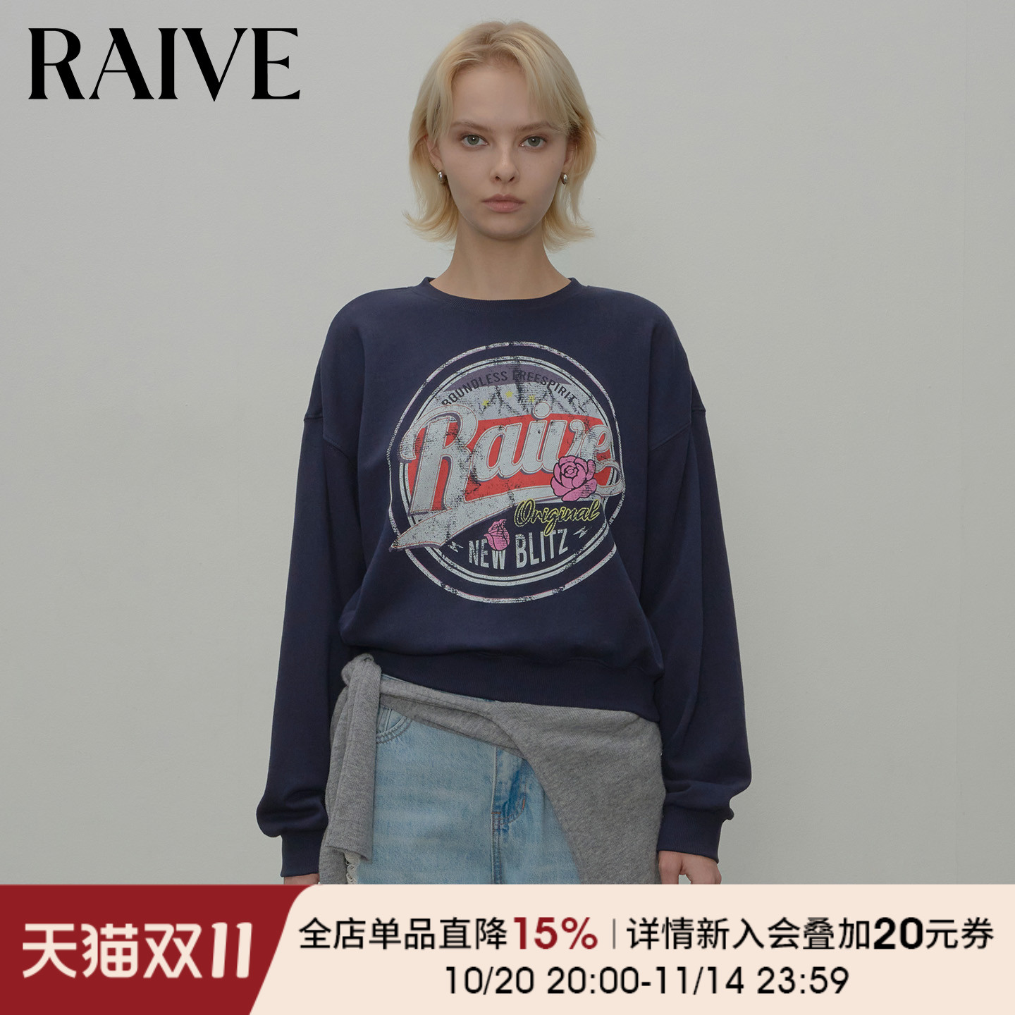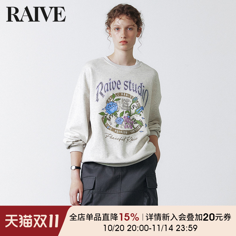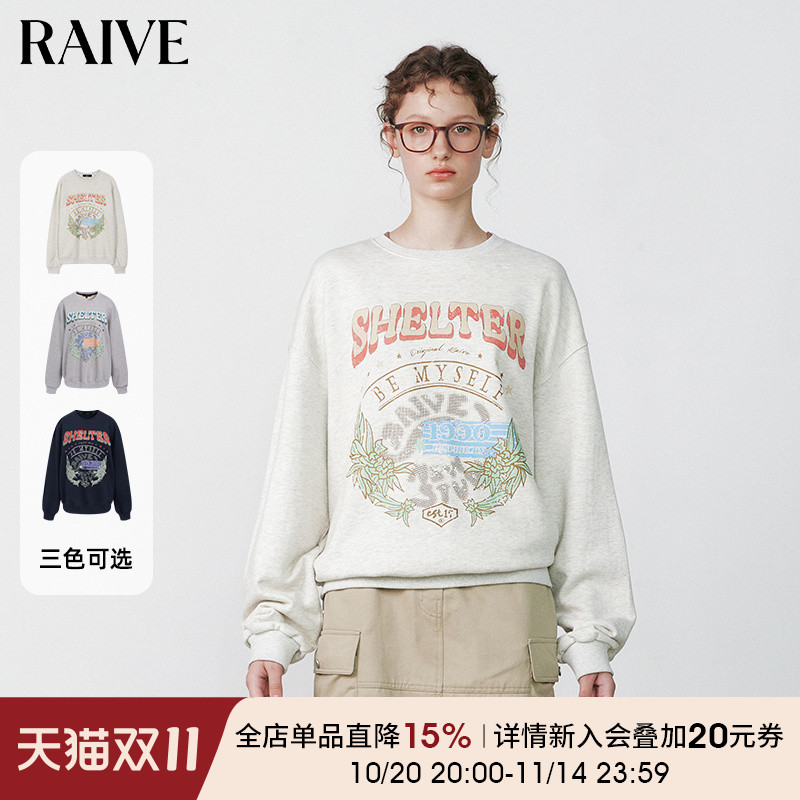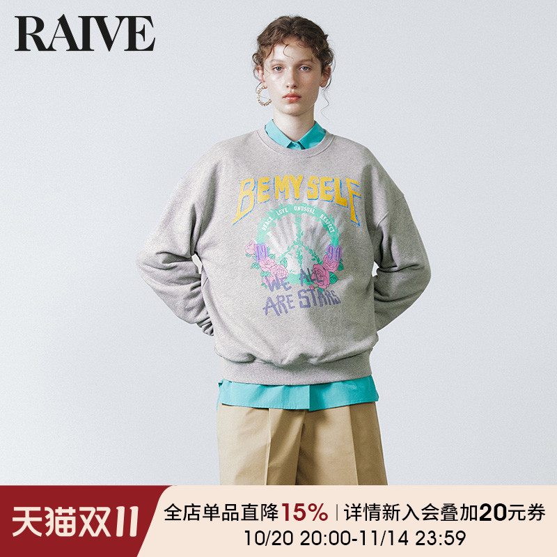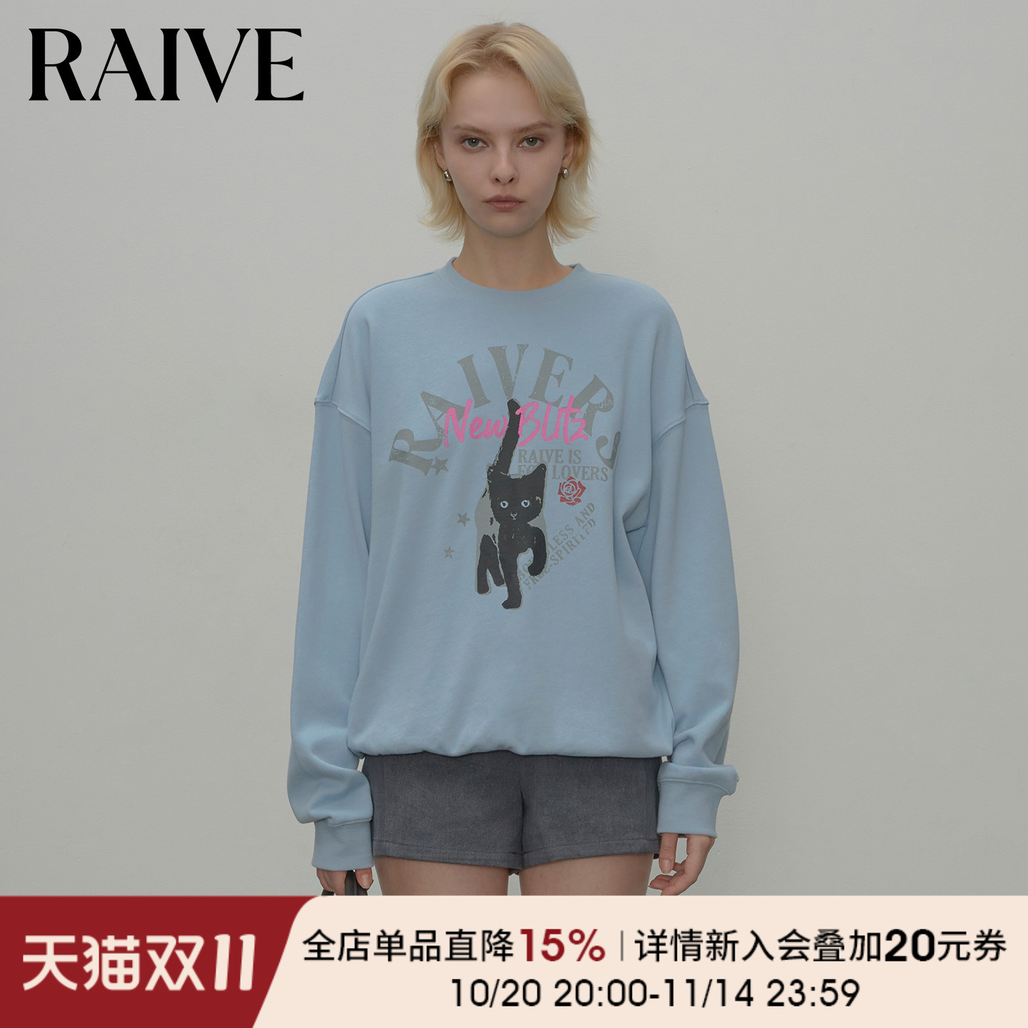 699[明星同款]RAIVE2025秋新款女全棉印花套头宽松上衣韩系圆领卫衣