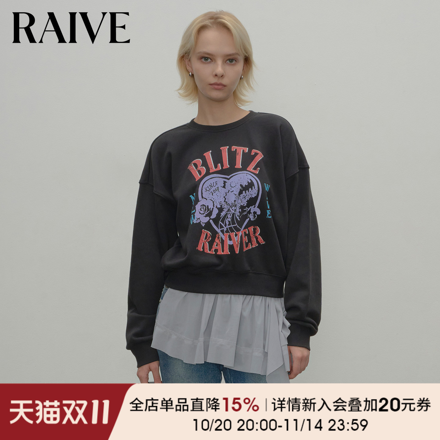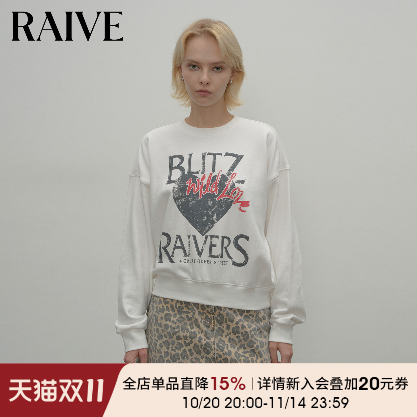 599RAIVE2025秋冬新款女宽松落肩涂鸦字母爱心印花全棉圆领套头卫衣