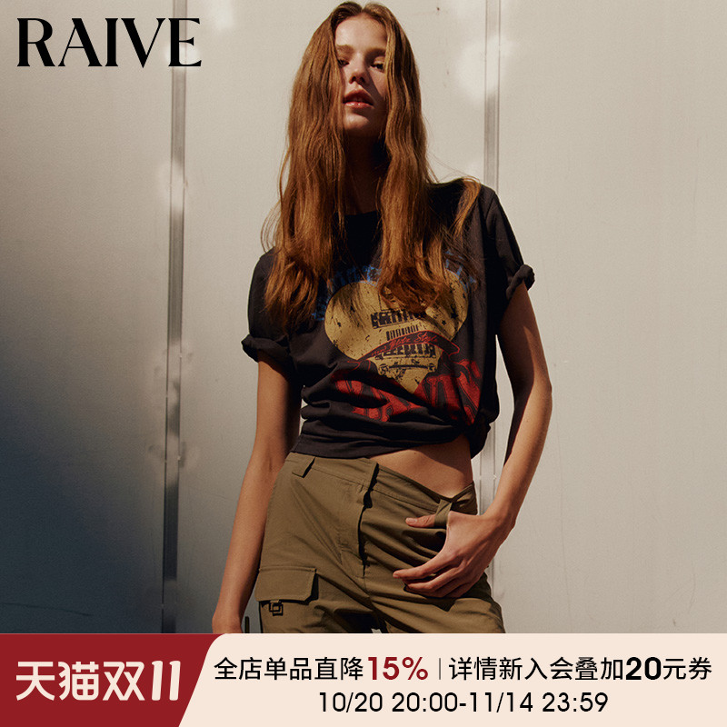 399[明星同款]RAIVE音浪T恤2025夏季新款复古玫瑰印花韩系女宽松短袖