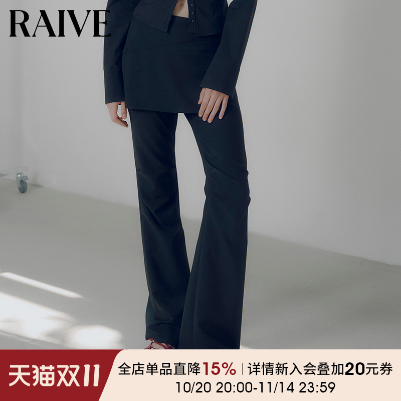 899[NO:ZE]RAIVE2025秋新款女休闲裤子窄版微喇修身假两件长裤超模裤