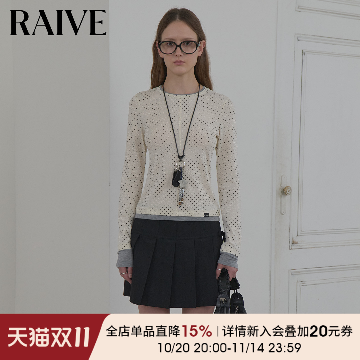 459RAIVE2025秋冬新款女上衣复古学院波点假两件撞色韩系圆领长袖T恤