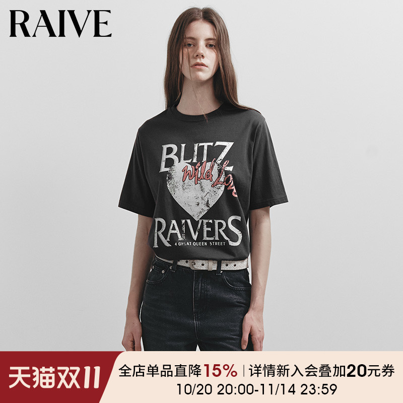 359[明星同款]RAIVE布里茨T恤夏女上衣圆领logo印花文艺撞色多色短袖