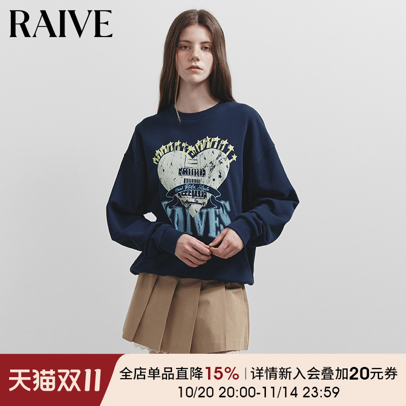 599[明星同款]RAIVE2025新款秋爱心logo印花女上衣圆领韩系宽松卫衣