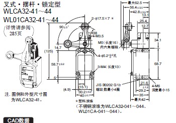 362叉式摆杆限位开关WLCA32-42LE 机床行程开关WLCA32-43LE