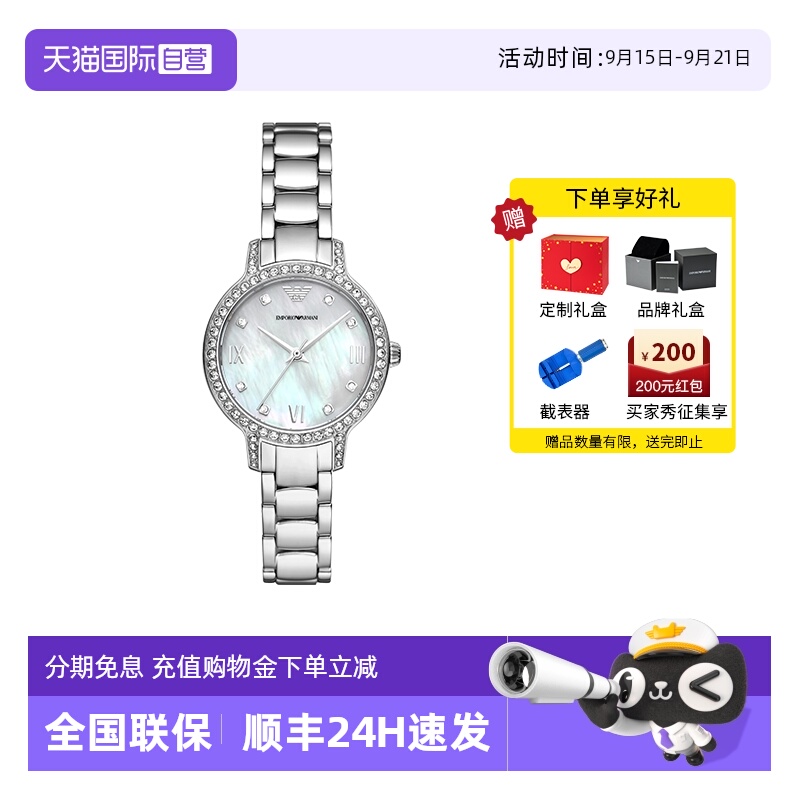 2700【自营】阿玛尼满天星手表女官方手镯耳钉礼盒送礼石英表AR80011
