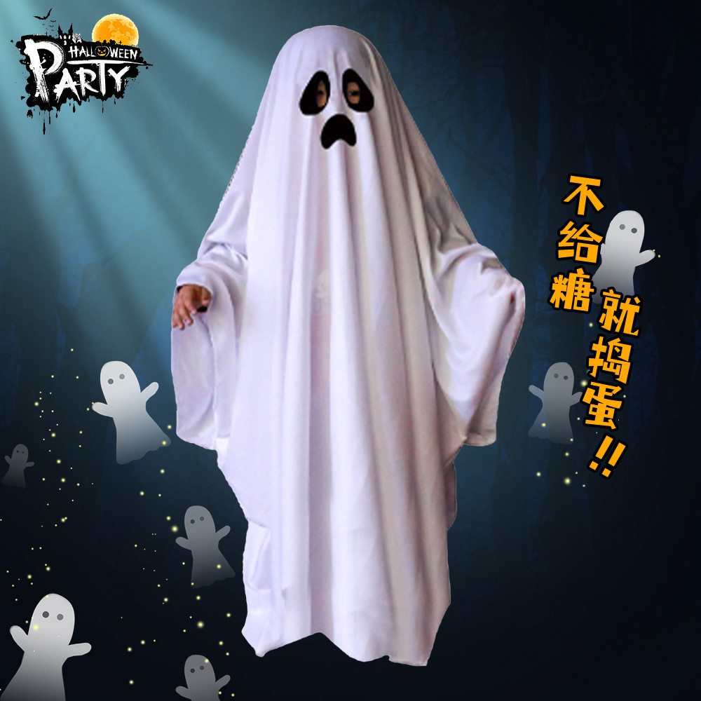 52.8万圣节儿童服装男童幽灵斗篷女童披风服饰装扮cos白色精灵鬼衣服
