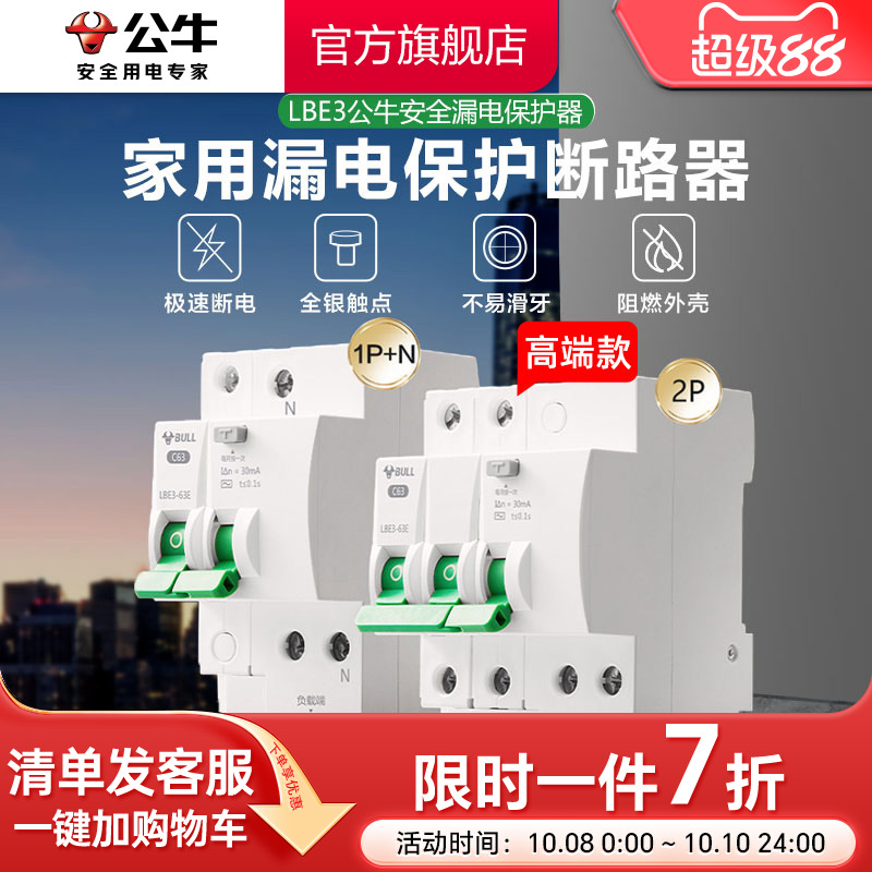 75.1公牛插座旗舰漏电保护器断路器家用空开电闸1P2P63A高端款
