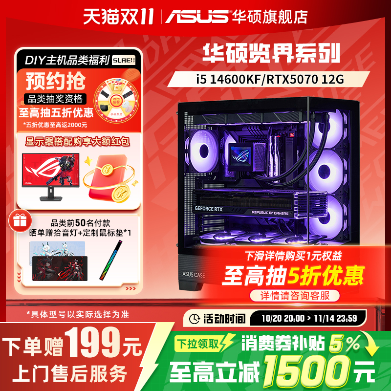 3838华硕览界系列主机DIY组装机海景房i5 12490F/12600KF/14700KF/4060Ti/4070TiS电竞台式电脑无畏契约CS三角洲
