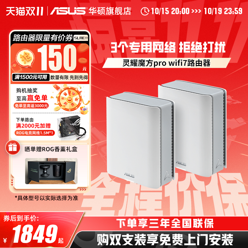 3499华硕灵耀魔方PRO路由器 WiFi7三频be9400大户型高速网络 智能组网无线AImesh 别墅企业级路由 AI网络防护