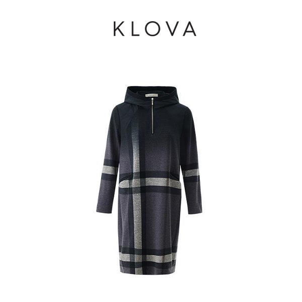 4390"【KLOVA】冬季无花果色定位格 连帽窗格针织连衣裙 LT5778(UN)"