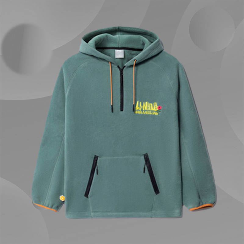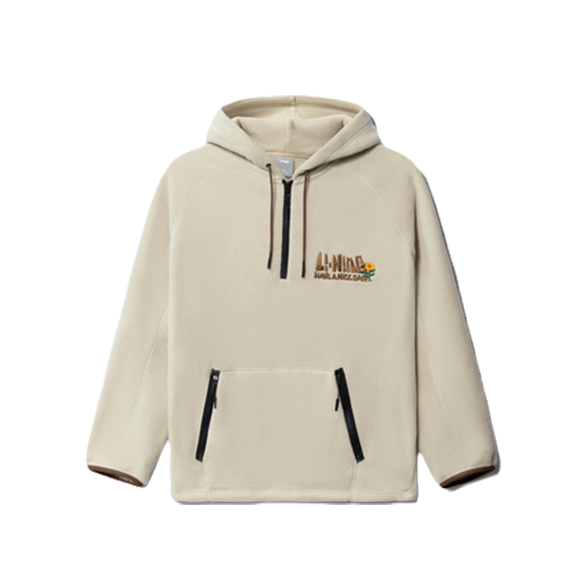 349李宁悟行都市户外运动宽松加绒套头连帽摇粒绒卫衣AWBR015