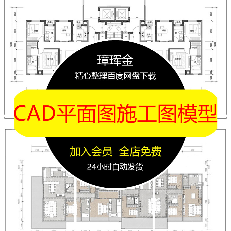 CAD户型图一梯两户平面图住宅大平层施工图小高层新规模型ed61