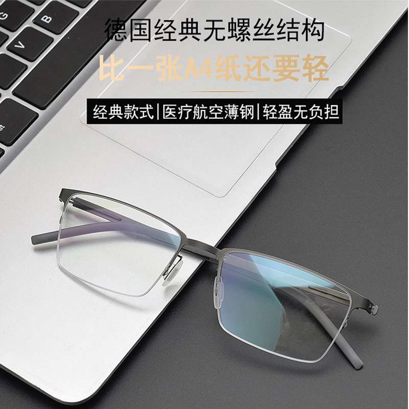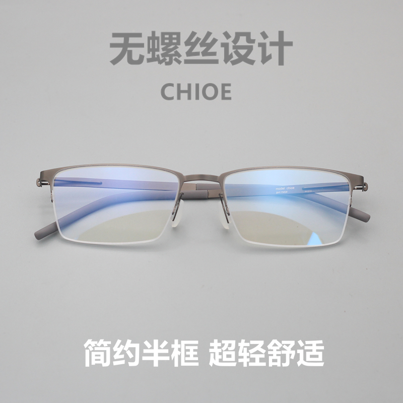 1387g新款半框男士商务休闲超轻眼镜无螺丝眼镜架可配近视变色chioe