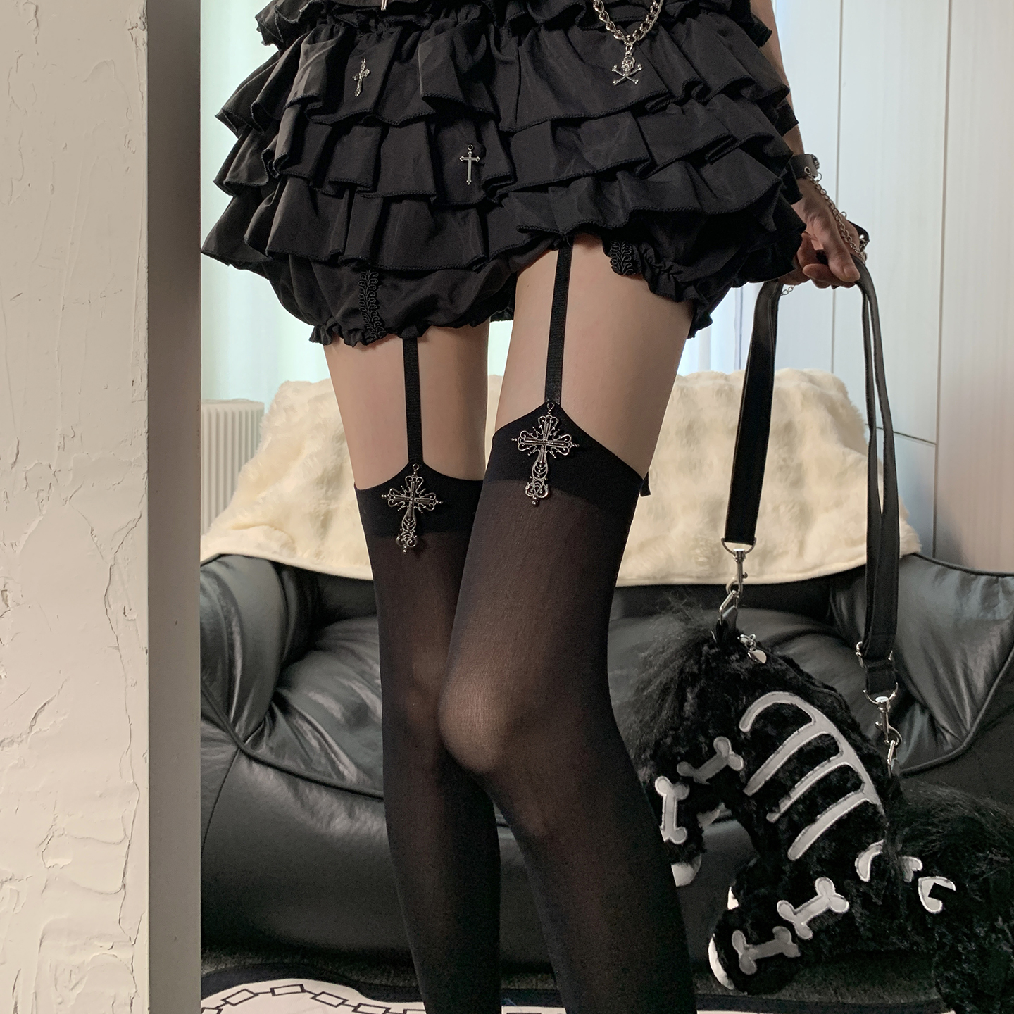 25.9"夜晚不可赎回"暗黑金属十字架吊带袜朋克辣妹y2k亚文化哥特DF