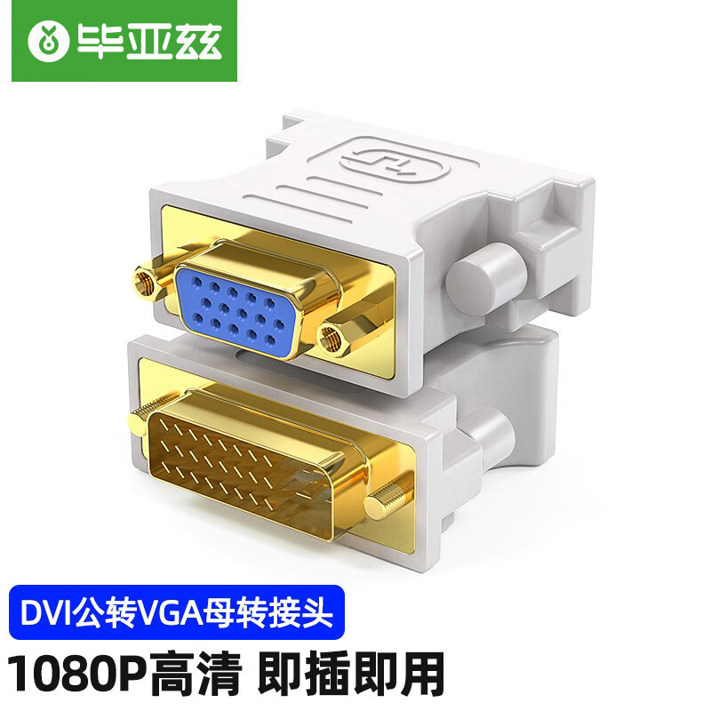 毕亚兹 DVI公转VGA母转接头 DVI-I/DVI24+5高清转换器连接线 白