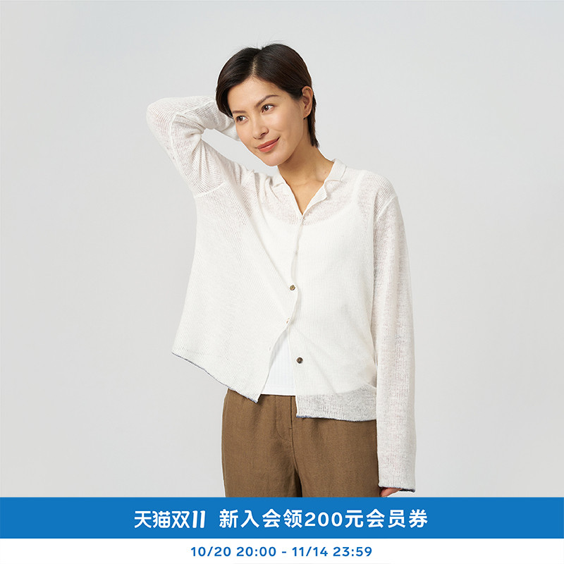 1450kleeklee25年春季女士亚麻翻领针织开衫 K0251KJ02
