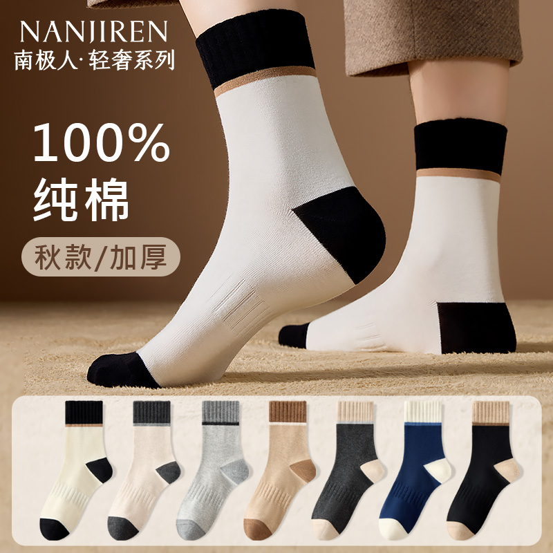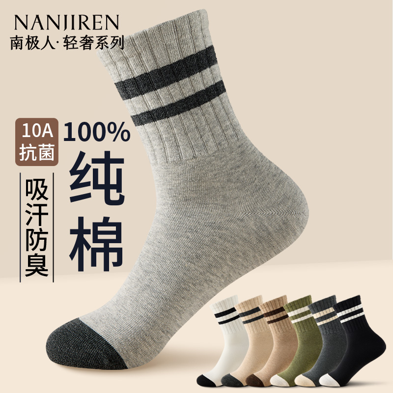 39.9南极人袜子男款秋冬季纯棉中筒袜吸汗透气百棉款10A级抗菌防臭PB