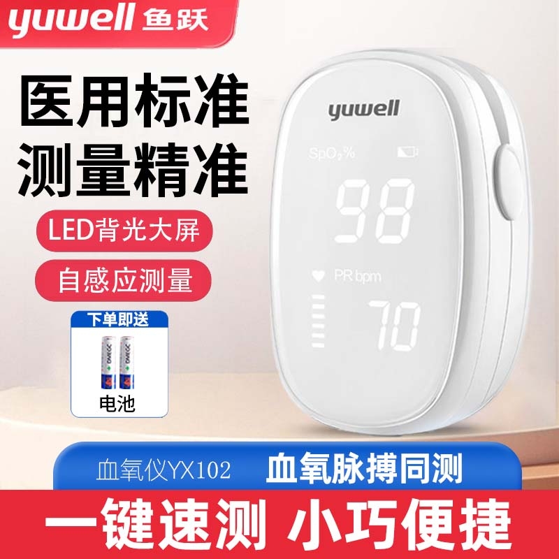 129鱼跃血氧仪指夹式家用医用脉搏手指血氧饱和度检测仪102心率yx306